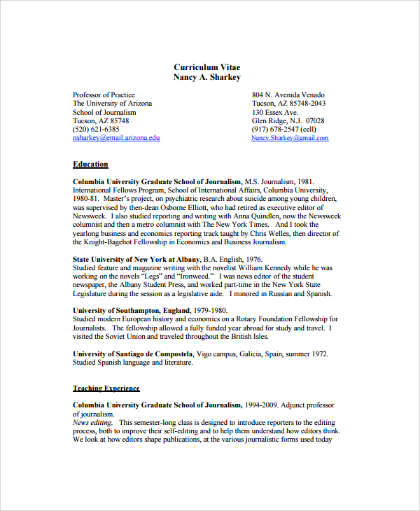 7+ Resume Format For Journalism